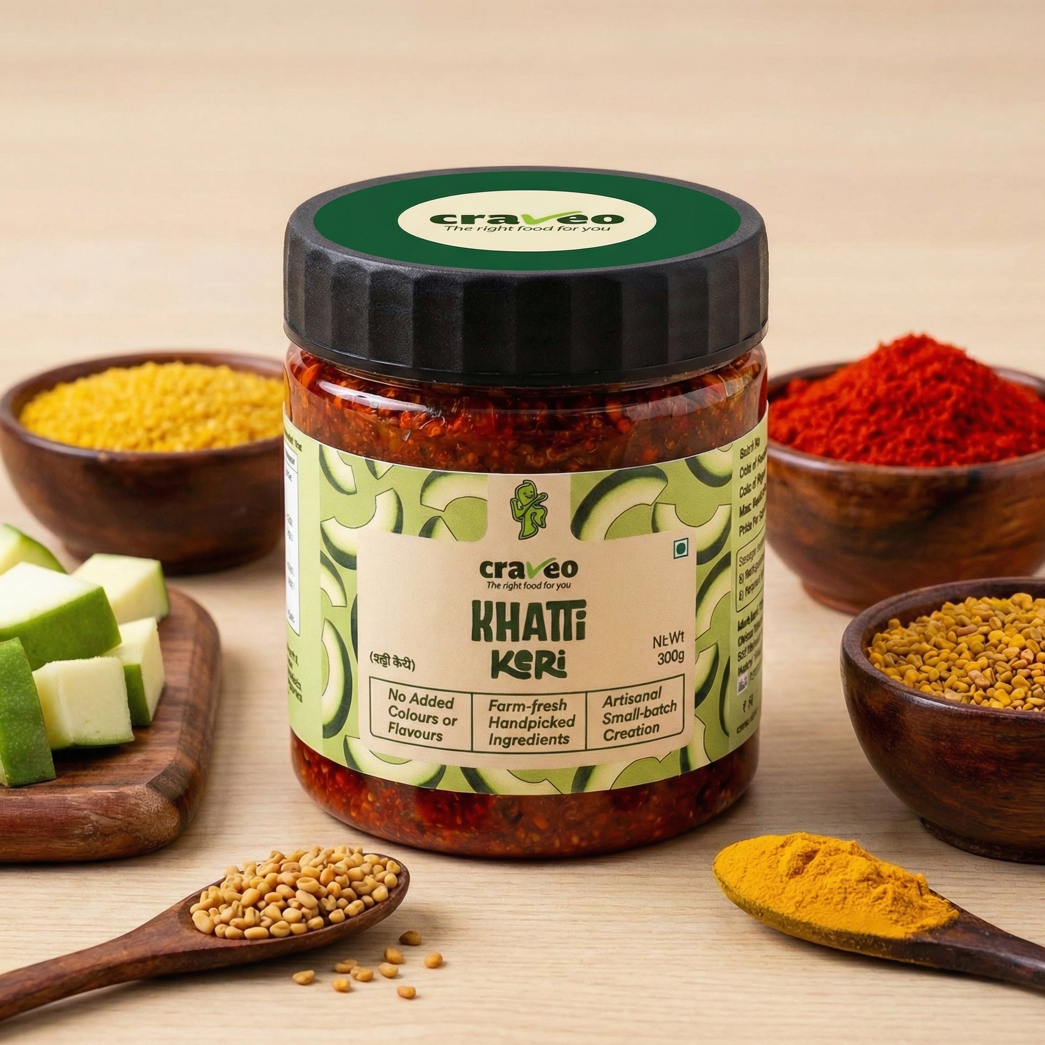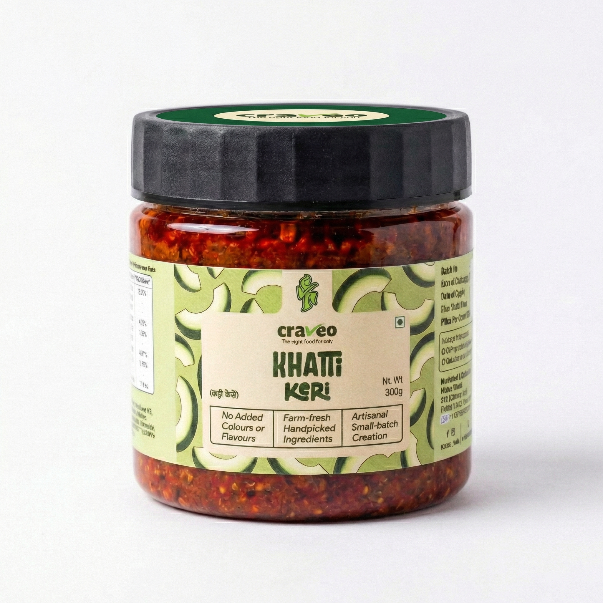 Raw Mango (41%), Sunflower Oil, Mustard Seeds, Iodised Salt, Chilli Powder, Fenugreek Seeds, Turmeric Powder, Asafoetida, Contains Class II Preservatives (INS211).