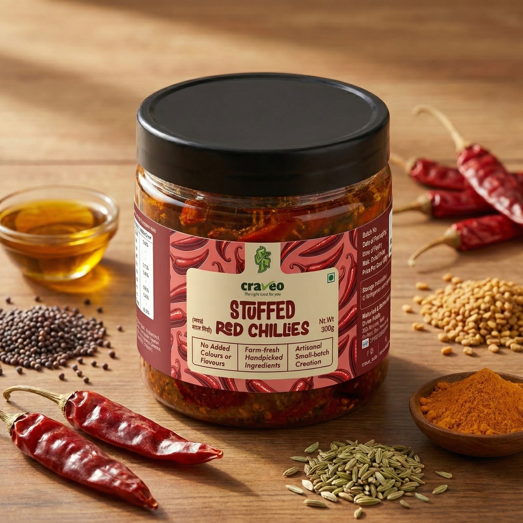 Our Stuffed Red Chilli Pickle is handmade and prepared with care, celebrating the essence of regional cuisine. It offers a unique taste experience that enhances your dishes with rich, authentic flavors.
